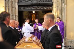Pożegnanie rozpoczęło się mszą świętą w bazylice pw. św. Apostołów Piotra i Pawła w Strzegomiu. Przewodniczył jej ks. bp. Adam Bałabuch. Następnie procesja żałobna wyruszyła ulicami miasta do kościoła pw. Najświętszego Zbawiciela Świata i Matki Bożej Szkaplerznej w Strzegomiu.