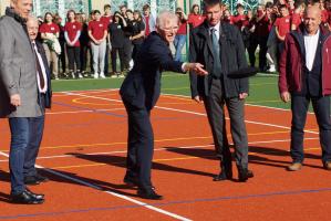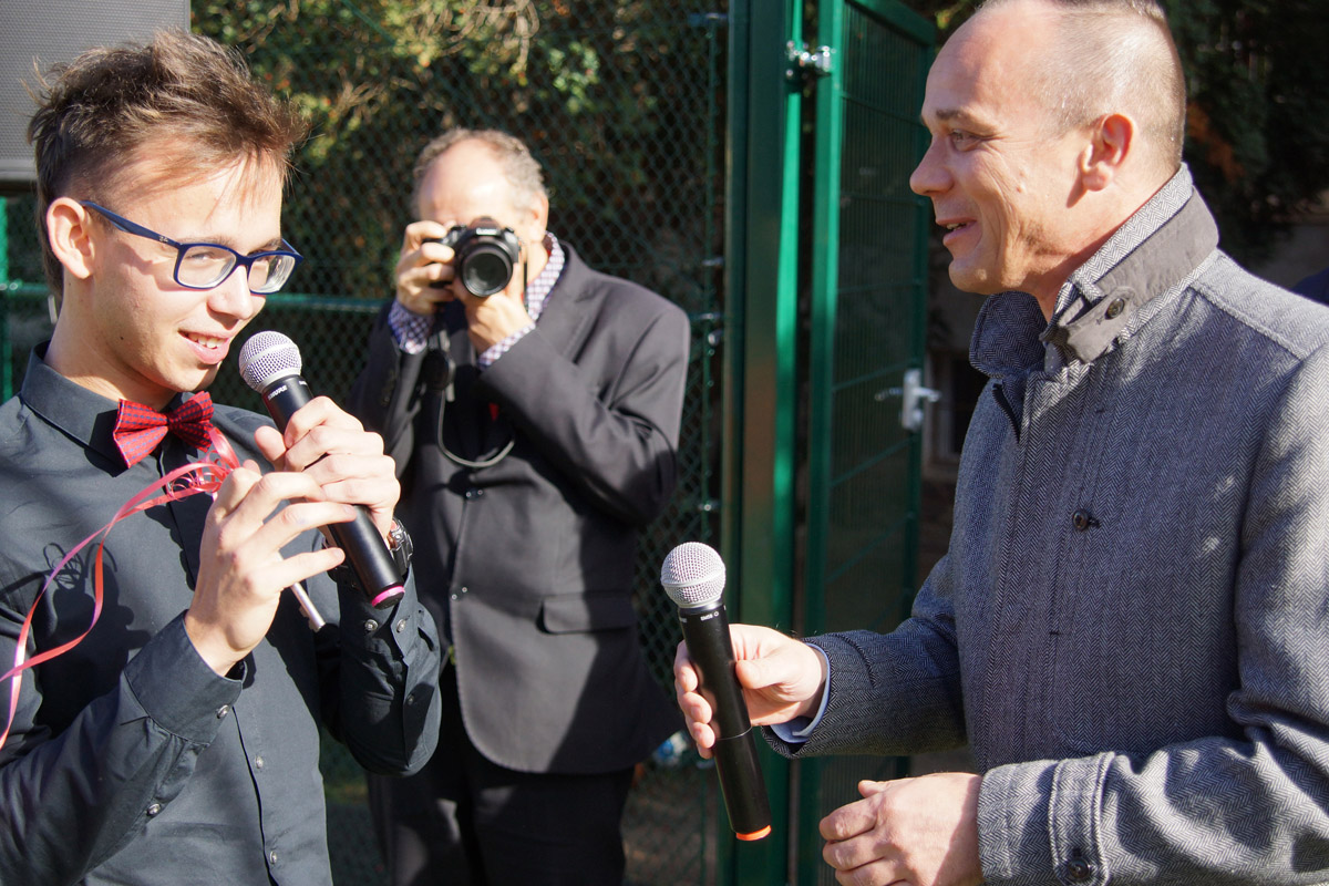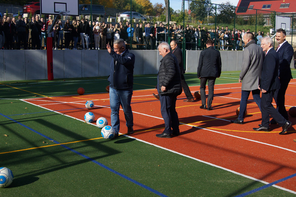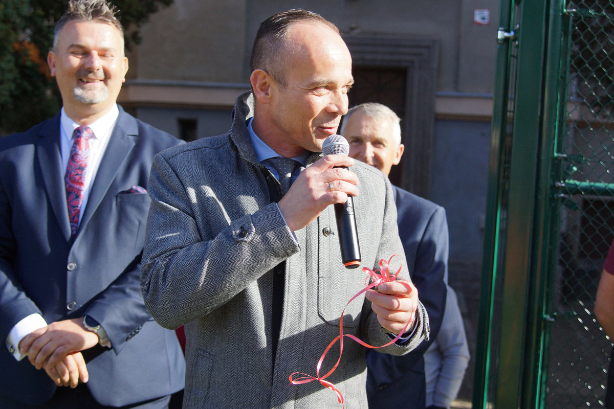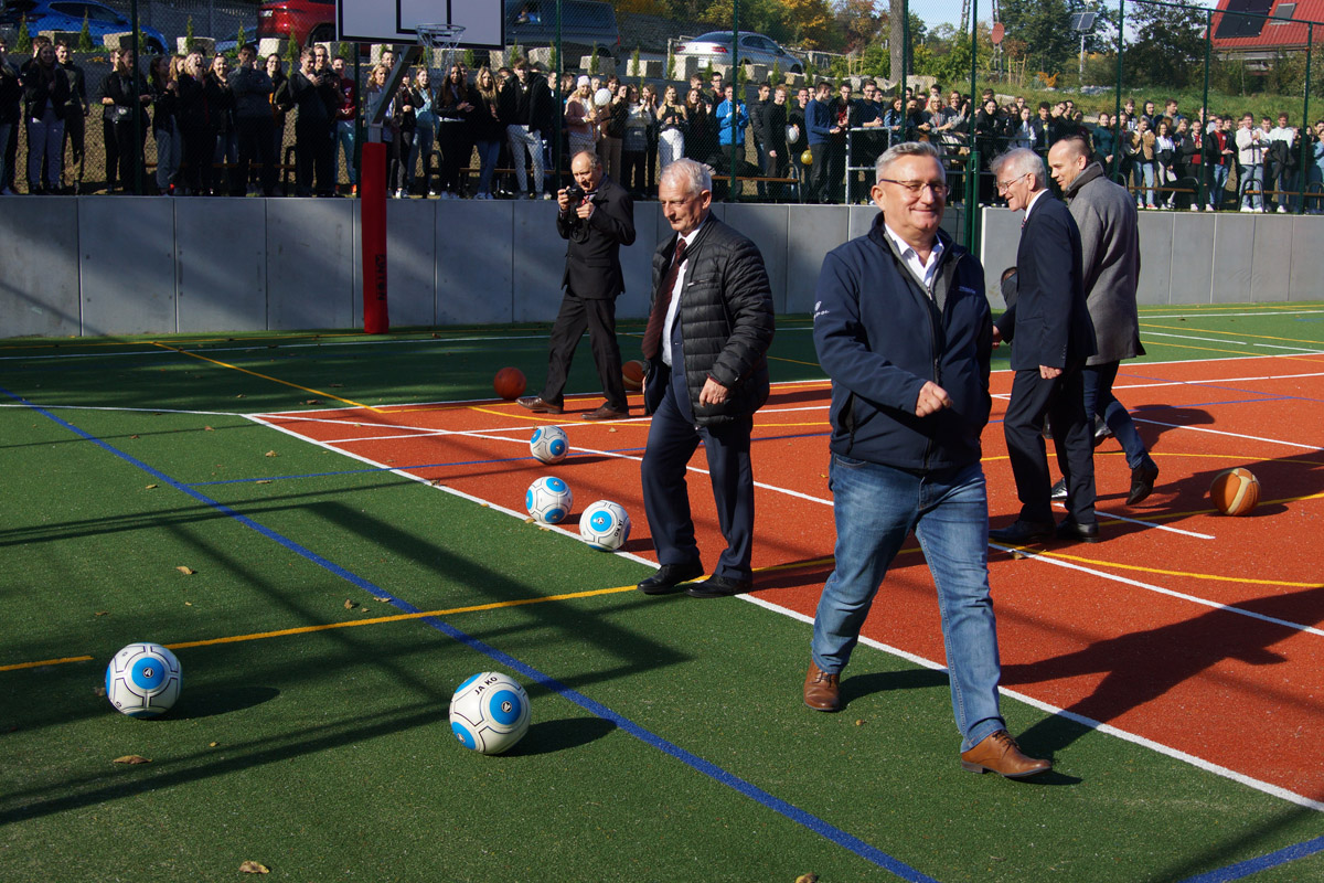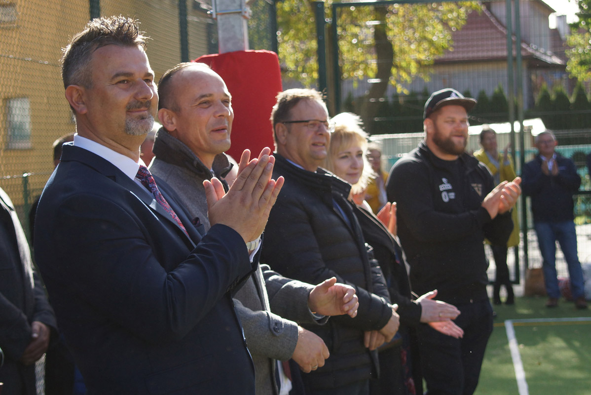 Boisko zrobiło spore wrażenie na mistrzu Pawle Fajdku, który pochwalił obiekt, ale także zagrzewał młodzież do aktywności fizycznej.
