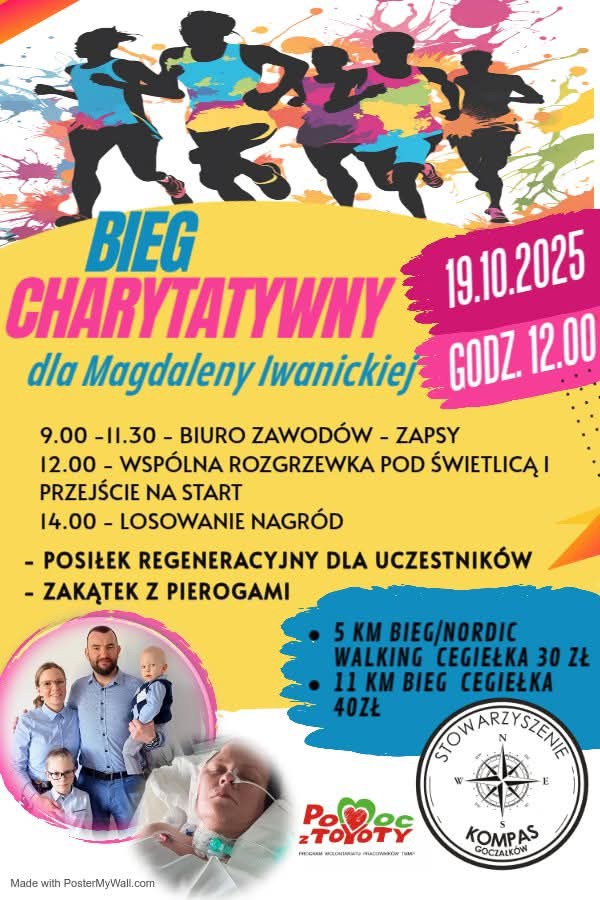 Stowarzyszenie „Kompas” z Goczałkowa, znane z aktywnego wspierania lokalnej społeczności, organizuje kolejną edycję Biegu Charytatywnego. Całkowity dochód z wydarzenia zostanie przeznaczony na pomoc pochodzącej z gminy Strzegom Magdalenie Iwanickiej, która walczy o życie po tragicznych powikłaniach leczenia.