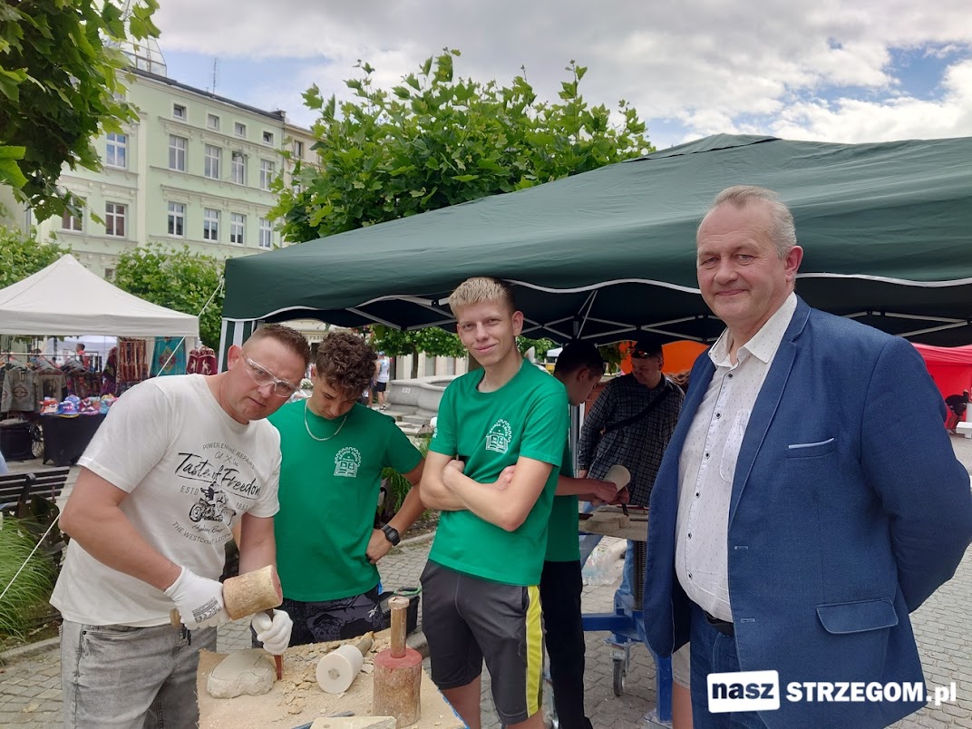 Na strzegomskim rynku warsztaty z obróbki kamienia prowadzili Jerzy Zysk, Michał Firlej i Tomasz Nowak. Każdy chętny mógł spróbować niełatwej sztuki kamieniarskiej wykorzystując tradycyjne narzędzia. Krzysztof Skolak z Fundacji „Bazalt” zaznacza, że tak samo kiedyś pracowali rzeźbiarze antyczni.