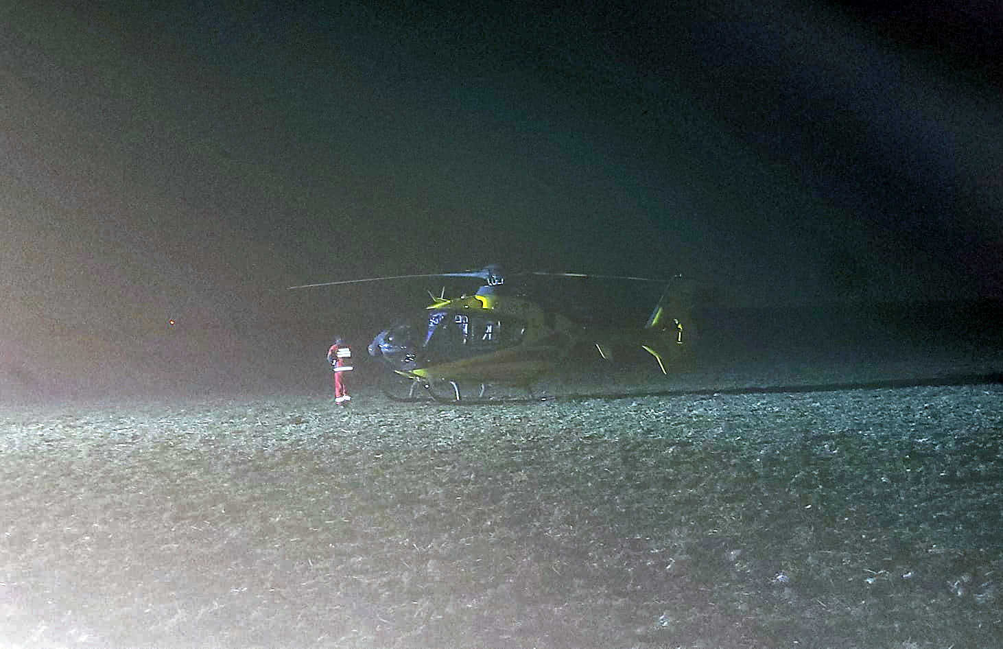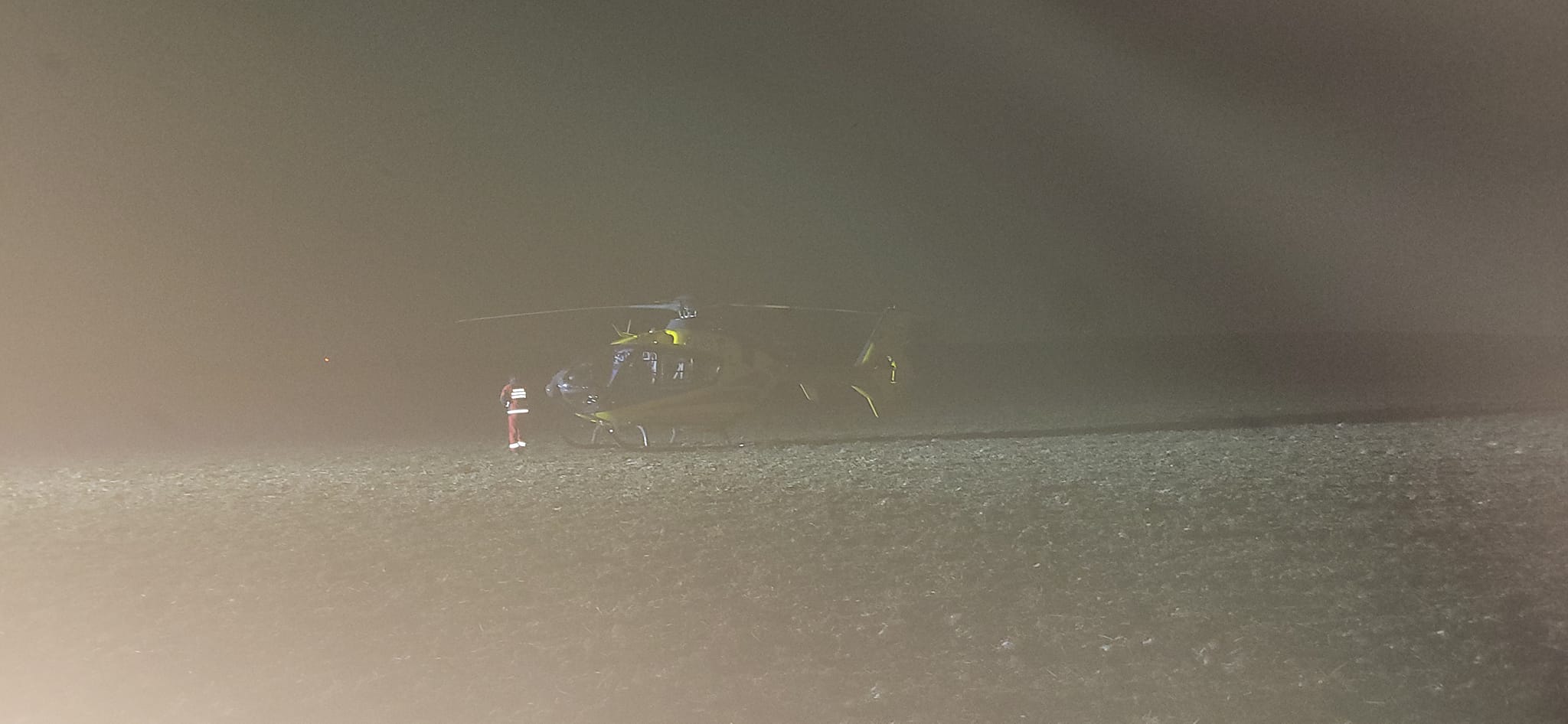 Wieczorne lądowanie śmigłowca LPR w Goczałkowie
