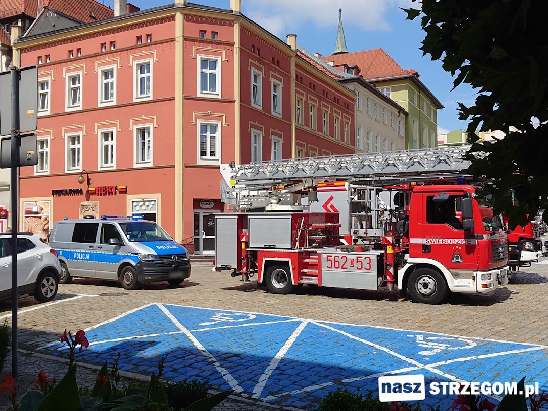 Woń gazu przyczyną interwencji czterech zastępów straży pożarnej w centrum Strzegomia [FOTO]