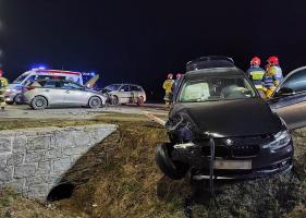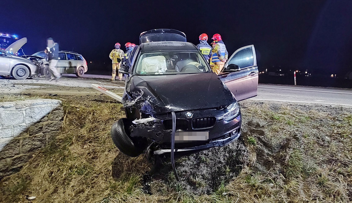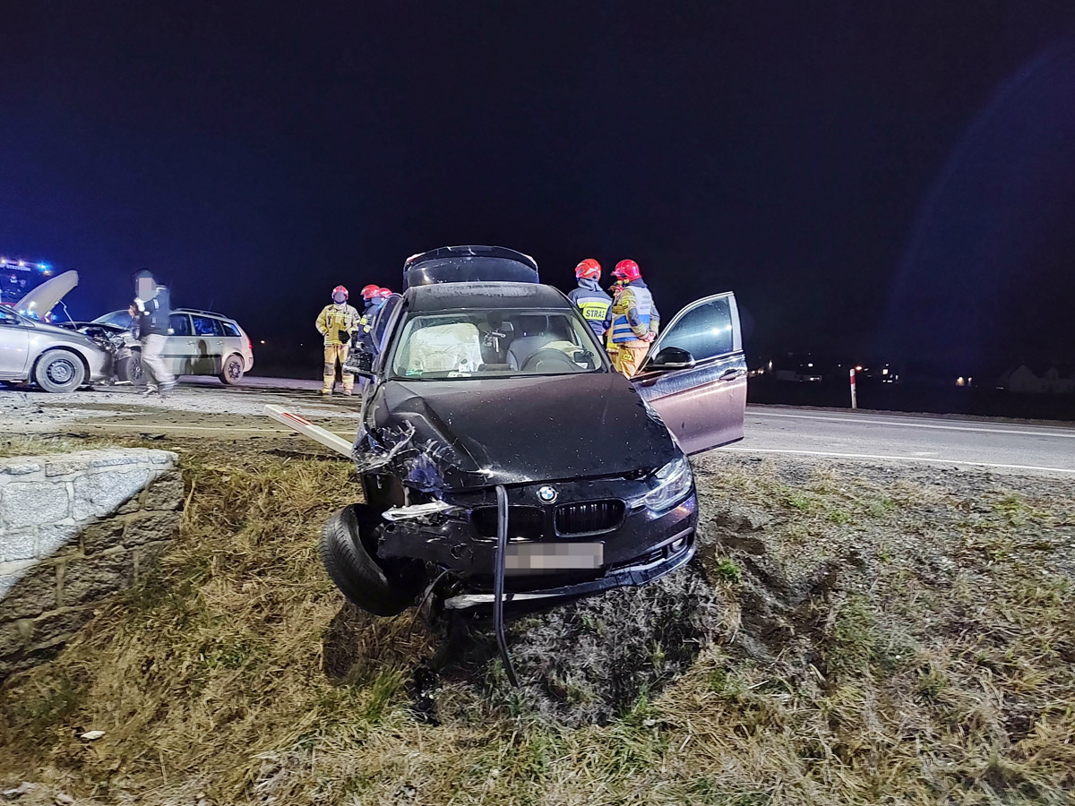 28 lutego przed godziną 19.00 na skrzyżowaniu krajowej „piątki” z drogą prowadzącą do centrum handlowego w Strzegomiu doszło do zdarzenia drogowego z udziałem trzech samochodów. Znajdowało się w nich łącznie dziewięć osób. Do szpitala trafiły dwie osoby, w tym 8-miesieczne dziecko.