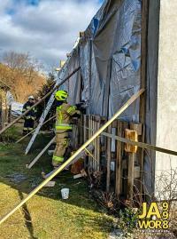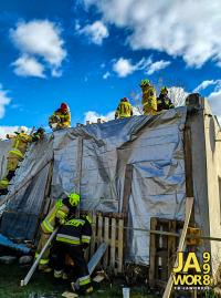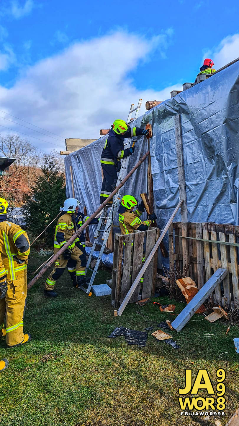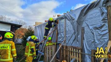 Jak informują druhowie z OSP Jawor, działania strażaków polegały na zabezpieczeniu dachu budynku za pomocą plandek. Akcja była o tyle trudna, że działaniom służb towarzyszył silny wiatr.