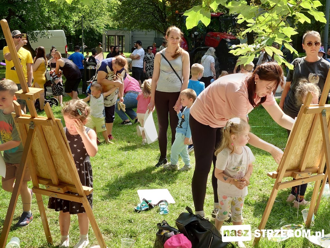 W parku czekały na najmłodszych gry i zabawy, dmuchany plac zabaw, zagroda z żywymi zwierzętami, plener malarski, ogromny traktor oraz wata cukrowa, pyszne truskawki i zdrowe przekąski. Dzieci były bardzo zadowolone i szczęśliwe.
