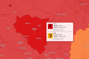 Ostrzeżenie trzeciego - najwyższego stopnia obowiązuje od piątku 12 lipca do soboty 13 lipca w godzinach od 12.00 do 2.00.