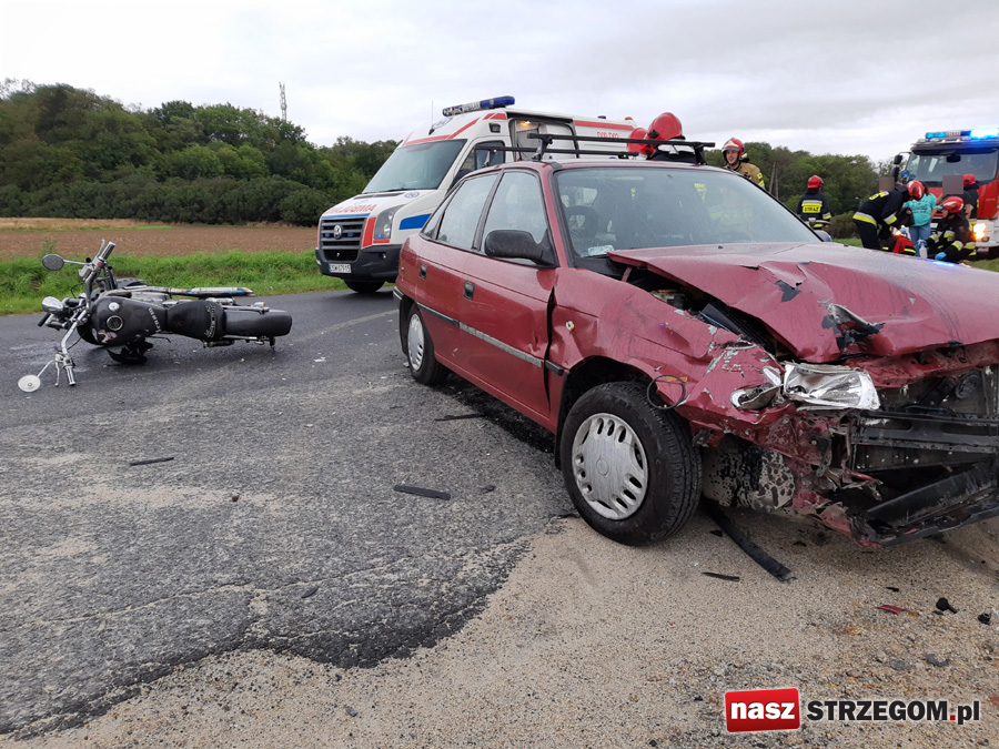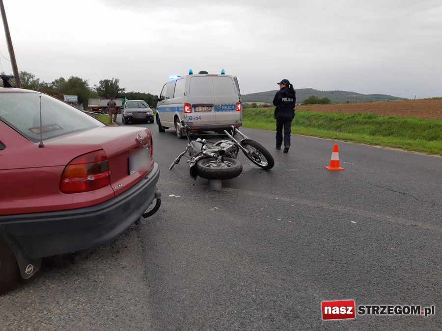 2 września w godzinach porannych na drodze wylotowej ze Strzegomia w kierunku miejscowości Żółkiewka doszło do zderzenia pojazdu osobowego z motocyklem. Kierujący jednośladem został przewieziony do szpitala.