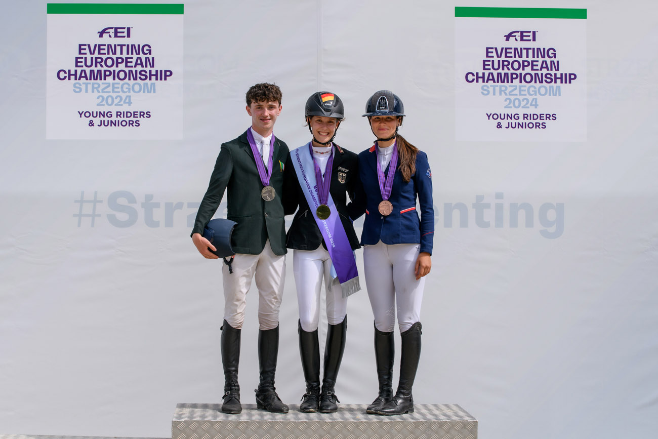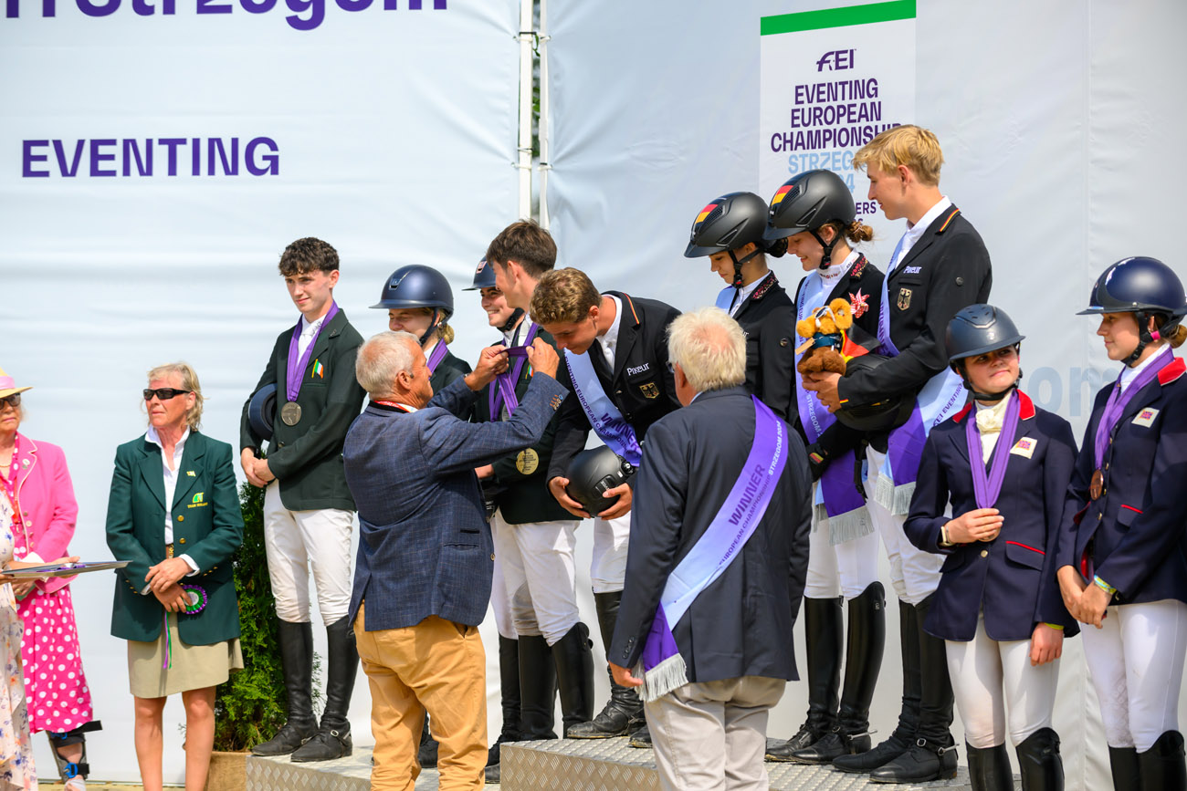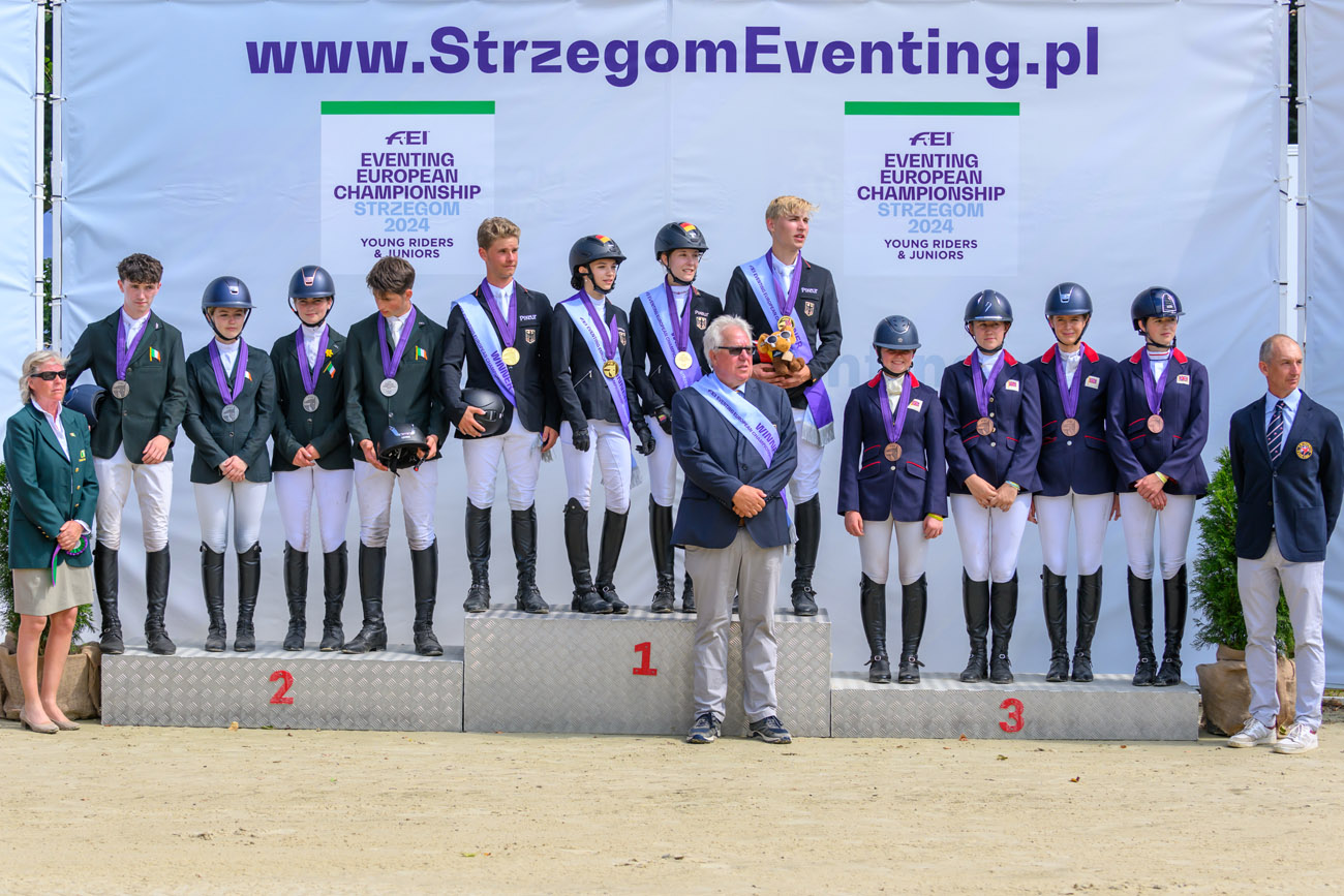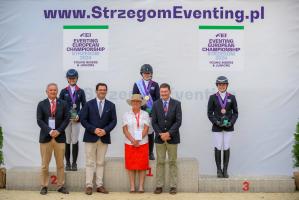 Po bezbłędnych występach na parkurze całego teamu niemieckiego, czego nie udało się osiągnąć prowadzącym po crossie Irlandczykom, to właśnie Niemcy zdobyli złoty medal w klasyfikacji indywidualnej i drużynowej w kategorii juniorów – 91.1. Hannah Busch na klaczy Crystal-Annabell z czwartej pozycji po próbie terenowej awansowała na pierwsze miejsce na podium – 27.7. – Czułam sporą presję przed dzisiejszym występem, ale starałam się zrelaksować, wyciszyć i cieszyć się z moim koniem rywalizacją, bo to jest dla mnie wyjątkowe wydarzenie. Bardzo pomógł mi mój wspaniały zespół, na którego wsparcie zawsze mogę liczyć – skomentowała nowa mistrzyni Europy. W ekipie partnerowali jej Mathis Huisinga i Carlotta, Pita Schmid i Favorita V, Matti Garlichs i Ludwig 282.