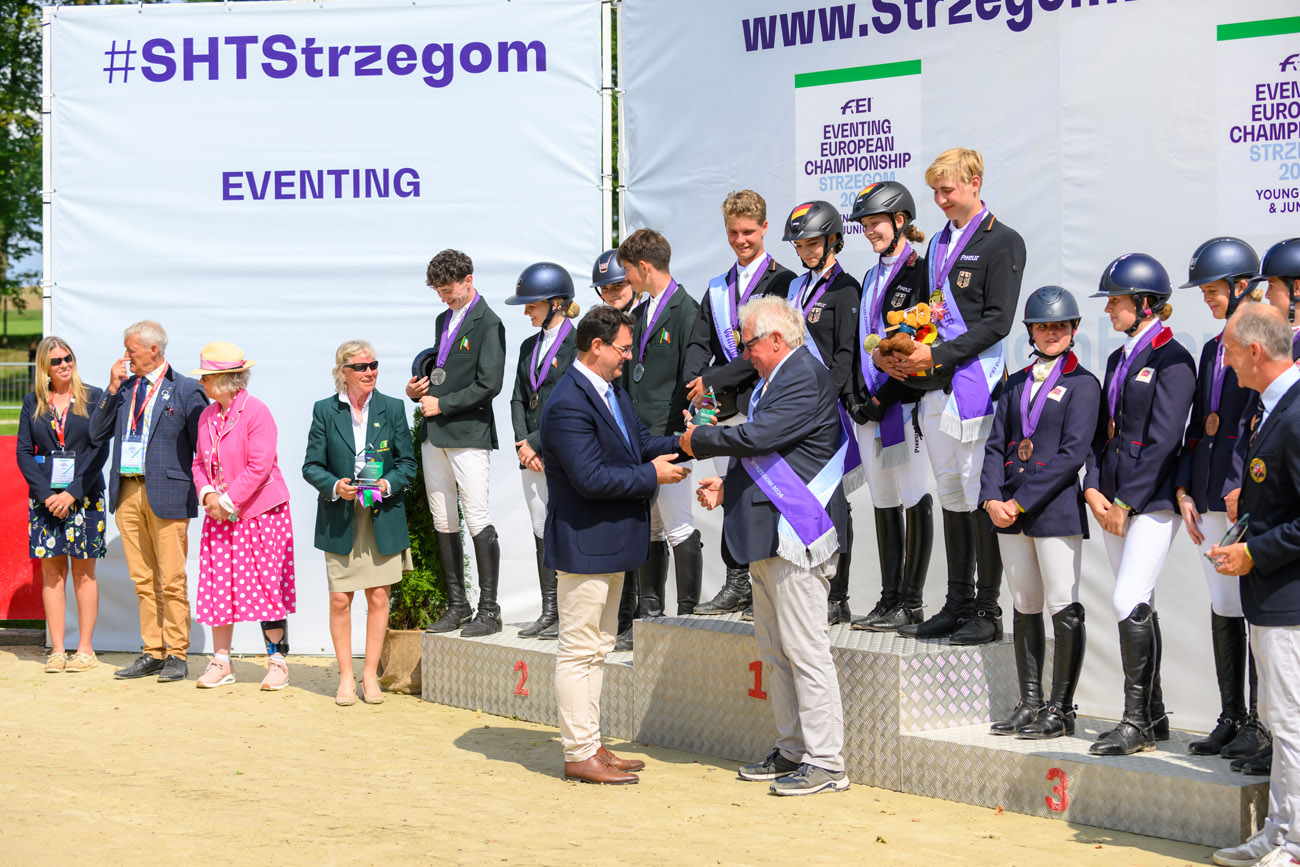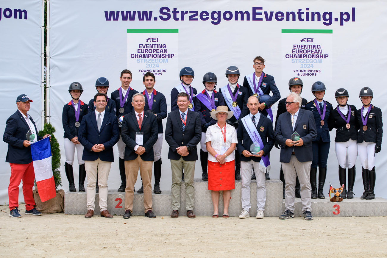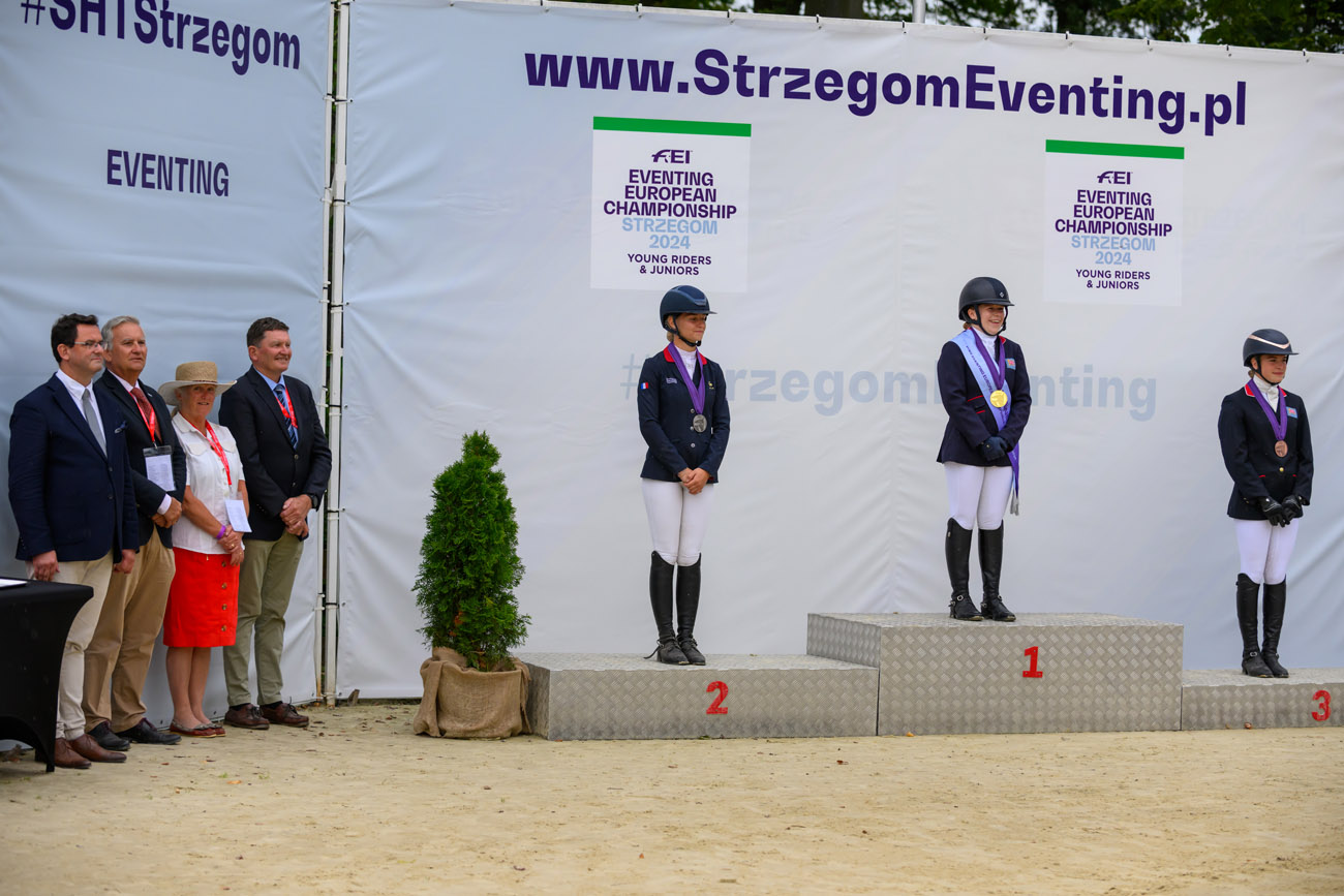 Po bezbłędnych występach na parkurze całego teamu niemieckiego, czego nie udało się osiągnąć prowadzącym po crossie Irlandczykom, to właśnie Niemcy zdobyli złoty medal w klasyfikacji indywidualnej i drużynowej w kategorii juniorów – 91.1. Hannah Busch na klaczy Crystal-Annabell z czwartej pozycji po próbie terenowej awansowała na pierwsze miejsce na podium – 27.7. – Czułam sporą presję przed dzisiejszym występem, ale starałam się zrelaksować, wyciszyć i cieszyć się z moim koniem rywalizacją, bo to jest dla mnie wyjątkowe wydarzenie. Bardzo pomógł mi mój wspaniały zespół, na którego wsparcie zawsze mogę liczyć – skomentowała nowa mistrzyni Europy. W ekipie partnerowali jej Mathis Huisinga i Carlotta, Pita Schmid i Favorita V, Matti Garlichs i Ludwig 282.