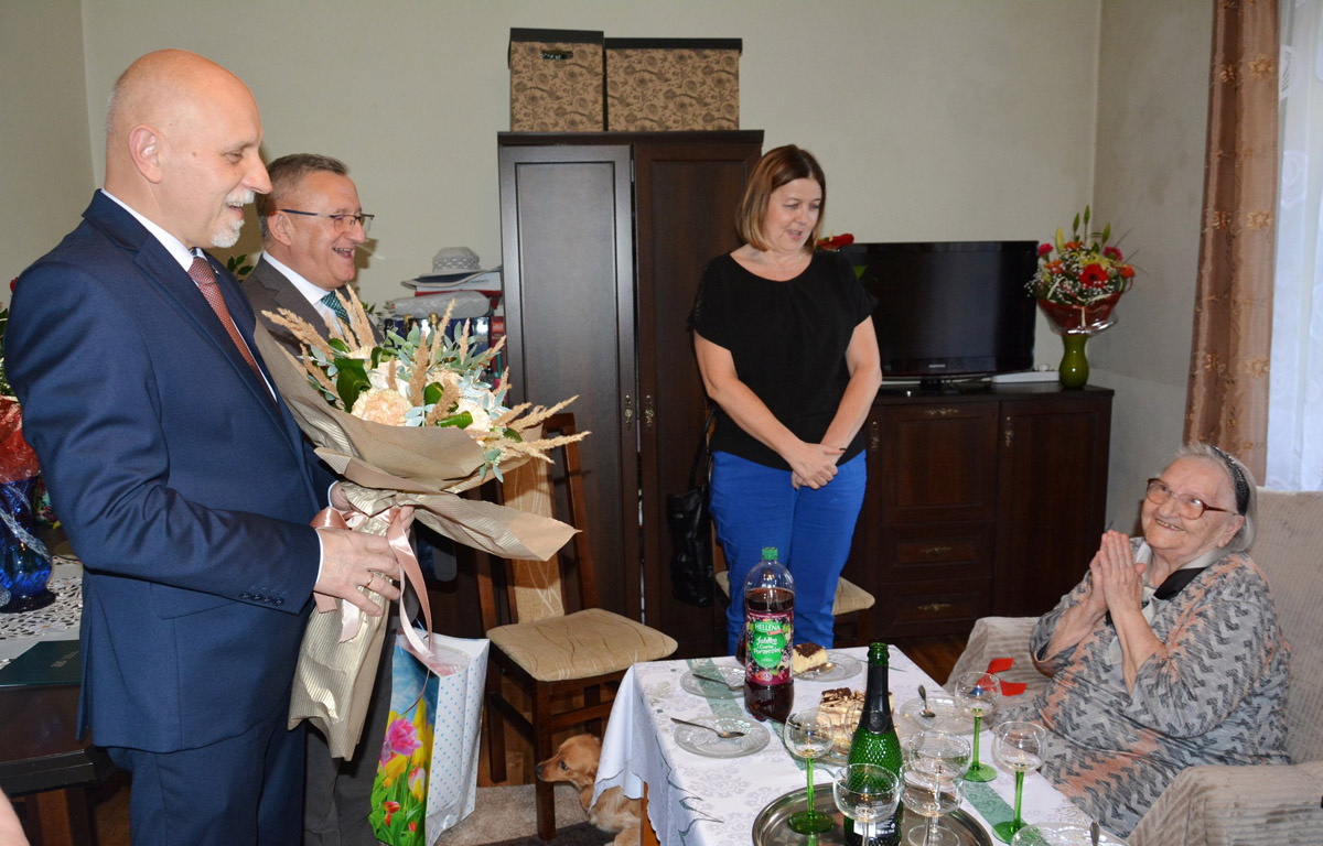 - Niech każda chwila będzie źródłem szczęścia i niech upływa w spokoju i zdrowiu – życzył stulatce burmistrz Strzegomia, Zbigniew Suchyta. Towarzyszyli mu przewodniczący Rady Miejskiej – Piotr Szmidt oraz kierownik Urzędu Stanu Cywilnego – Aneta Zaskórska, którzy obdarowali jubilatkę kwiatami oraz urodzinowym prezentem.